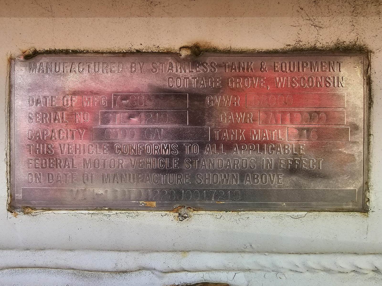 1988 STE FOOD GRADE TRAILER Food Grade Tanker Trailer