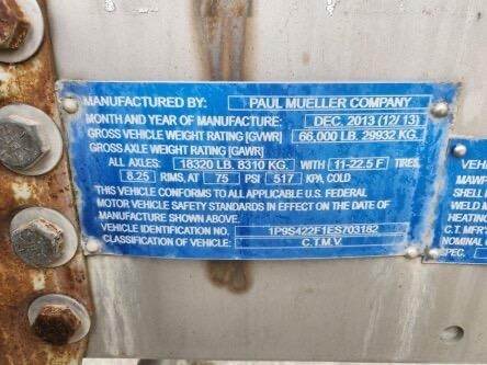 2014 PAUL MUELLER COMPANY Tandem Axle Stainless Steel Food Grade Tanker Trailer - Air Ride, Fixed Axle